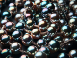 Eine der persönlichen Favoriten sind die sogenannten „Heilige Gral Wellige“ Perlen. Diese sind groß, haben unglaublich bunte (natürliche) Farben, einen metallischen Glanz und eine wunderschöne organische, gewellte Textur. Wenn es eine Perlenschnur gibt, die in einer Menschenmenge auffällt, dann sind es diese. Sie sind auch unglaublich schwer zu fotografieren, aber es ist gelungen, die wahre Schönheit und Farbe einer der drei Schnüre, die gefunden wurden, einzufangen.